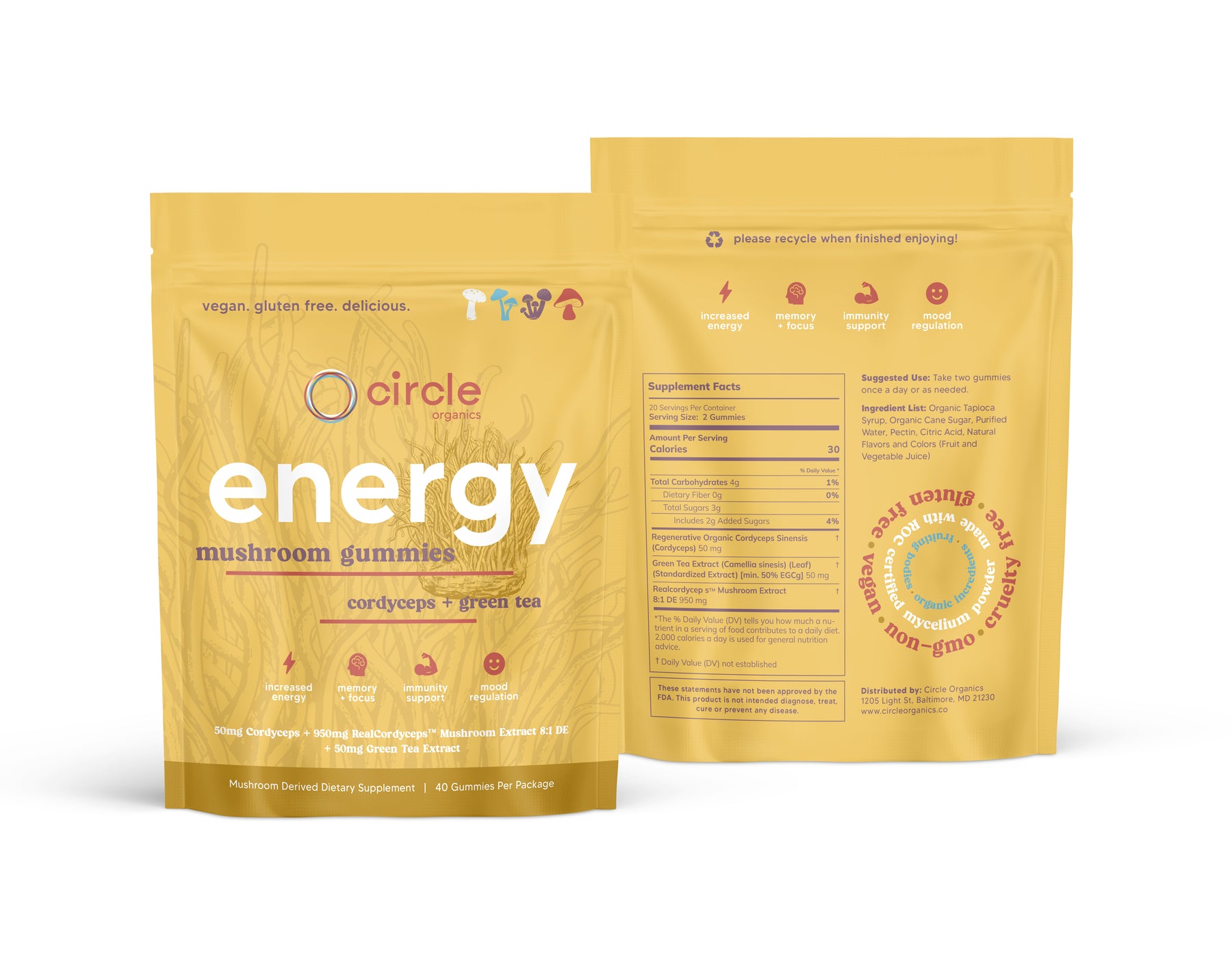 Life can be busy - and sometimes you just need a little boost that’s clean, natural, and crash-free. That’s why we made Circle Energy Gummies, a daily companion crafted with organic mushrooms and adaptogens, packaged in fully compostable materials.